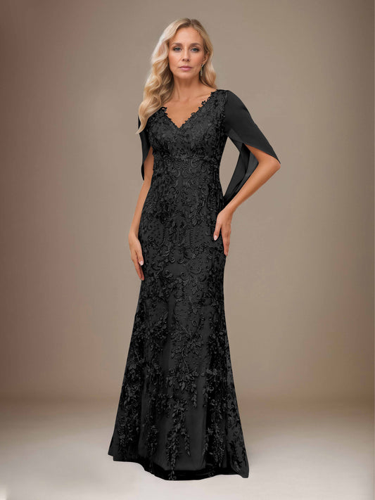 Diantha Romantic V Neck Lace Appliques Cape Chiffon Mother of the Bride Dresses