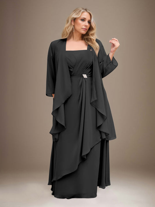 Drucilla Stylish Two Pieces Beaded Long Chiffon Mother of the Bride Dresses