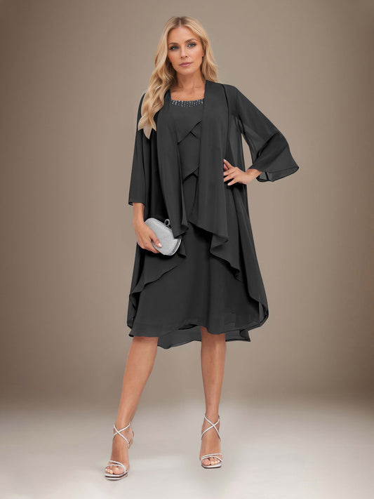 Dysis Graceful Two-Pieces Tiered Knee Length Chiffon Mother Of The Bride Dresses