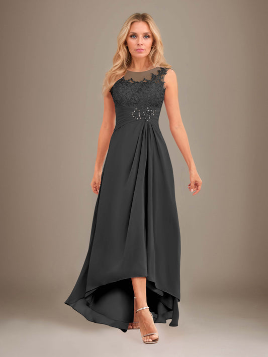 Elowise Refined Lace Appliques High Low Chiffon Mother Of The Bride Dresses