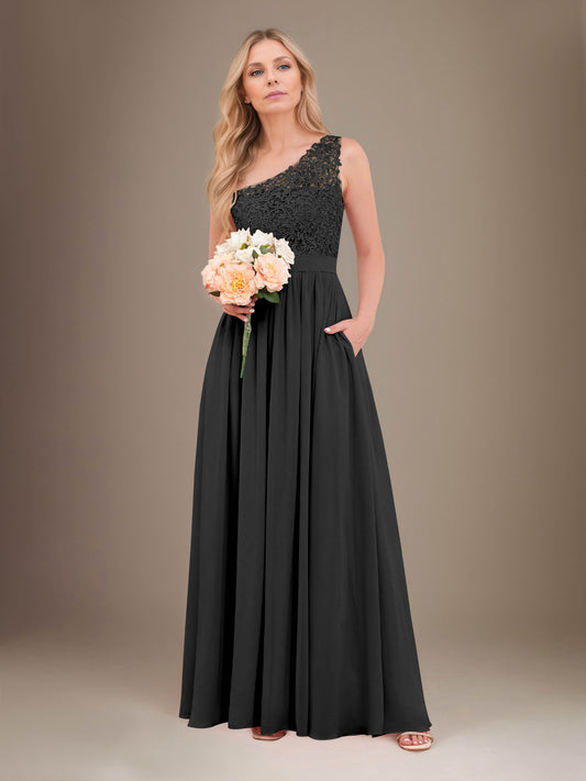 Genoveva Classic A-Line One Shoulder Lace Chiffon Maxi Bridesmaid Dresses