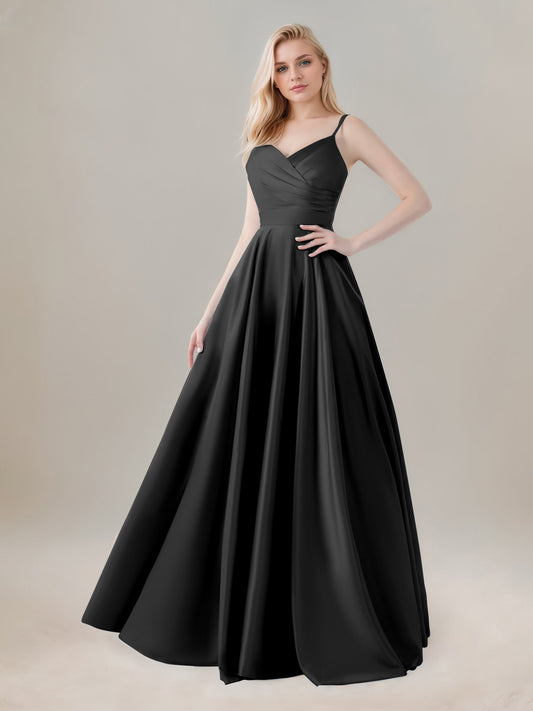 Ginevra Graceful A-Line Spaghetti Straps With Pockets Long Satin Formal Dresses