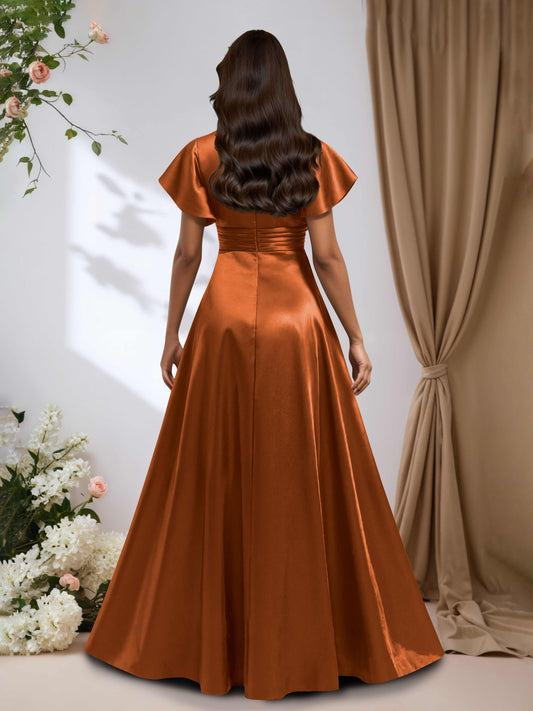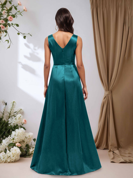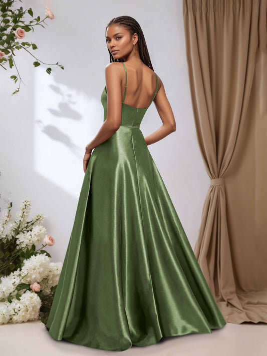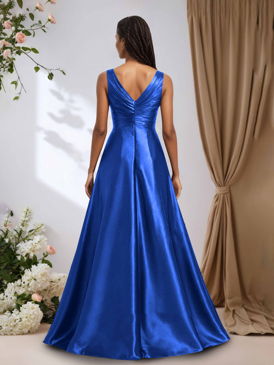 Alira Elegant V-Neck Floor-Length Stretch Satin Bridesmaid Dresses