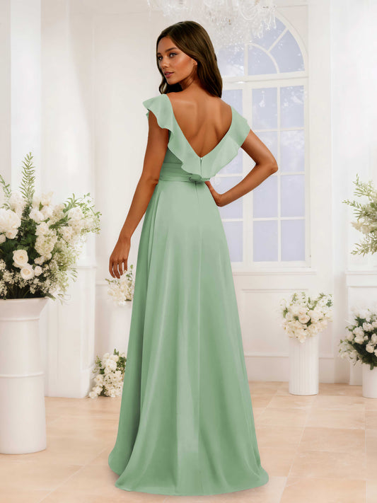 Graceful V-Neck Ruffles Long Chiffon Jumpsuits For Bridesmaids