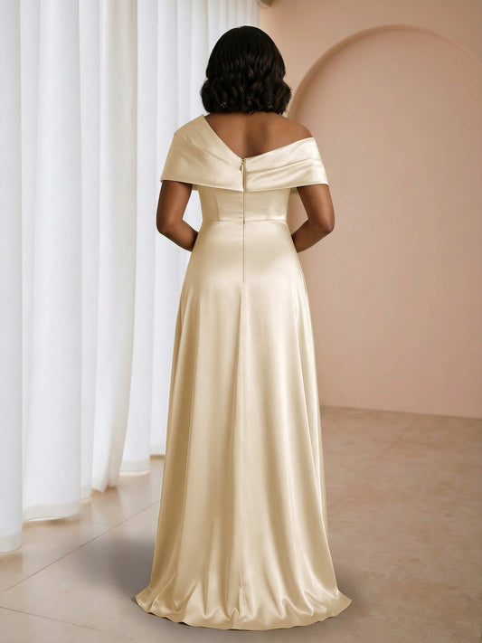 Thaloria Sophisticated A-Line Satin Dress with Asymmetrical Neckline and Slit Mother of the Bride Dresses