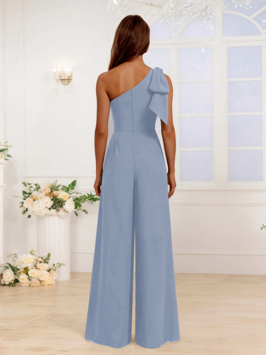 One Shoulder Floor-Length Chiffon Jumpsuits For Bridesmaids