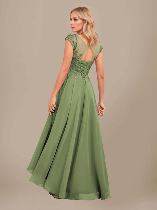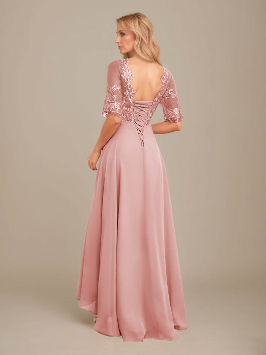 Dariela Luxe Illusion Half Sleeves Scoop Lace Chiffon Mother Of The Bride Dresses