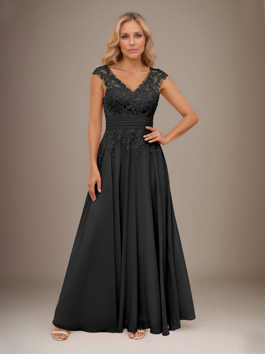 Diantha Romantic V Neck Lace Appliques Cape Chiffon Mother of the Bride Dresses