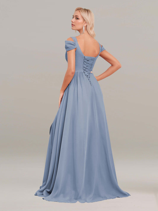 Dagny Fascinating A-Line Slit Ruched Floor Length Chiffon Bridesmaid Dresses
