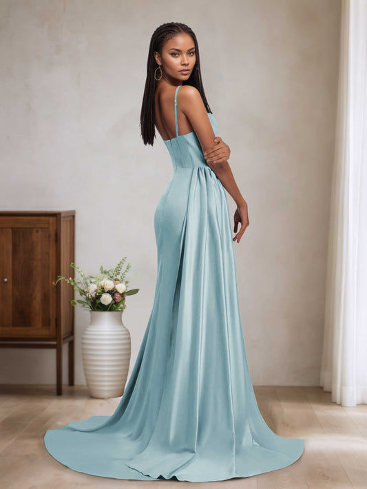 Oraia Square Spaghetti Straps Bridesmaid Dresses with Side Slit