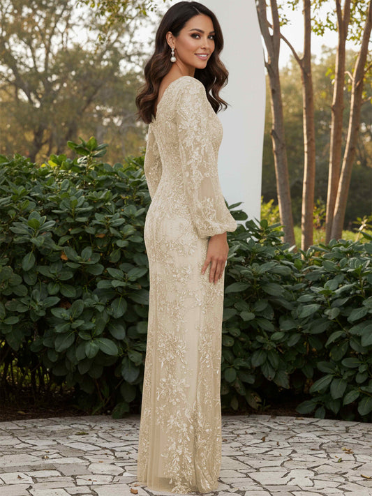 Madilyn Chic Sheath/Column V-neck Lace Floor-Length Pleated Mother of the Bride Dresses