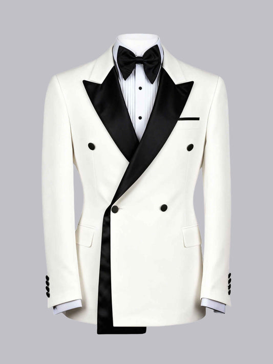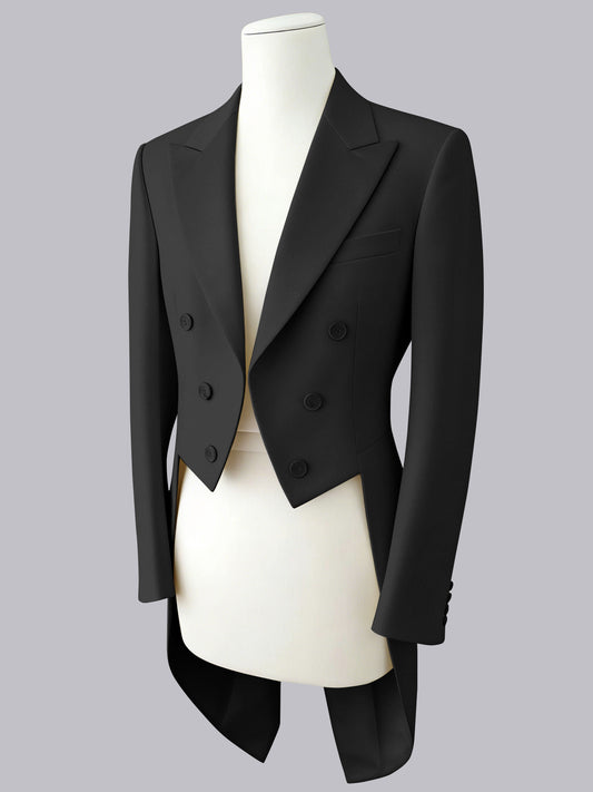 Classic Double Breasted Peak Lapel Back Hem Tailcoat Men's Suit Jacket For Groom & Wedding