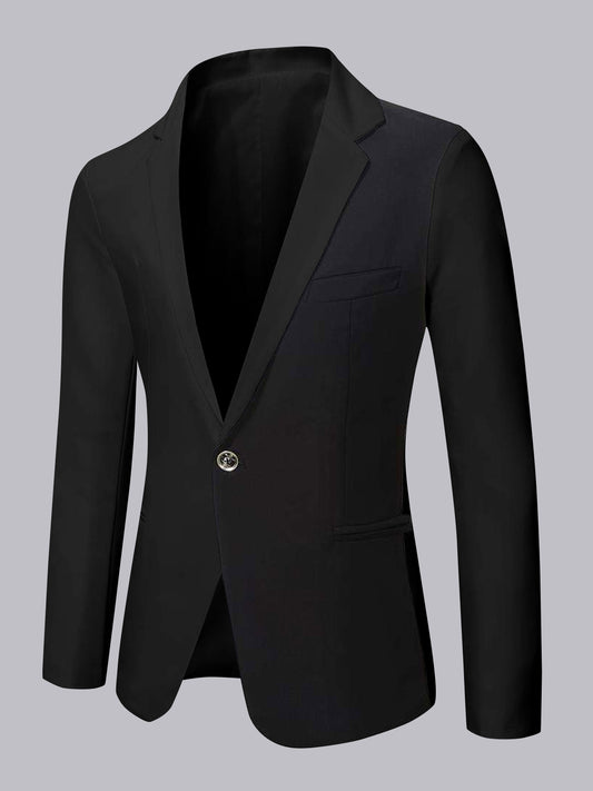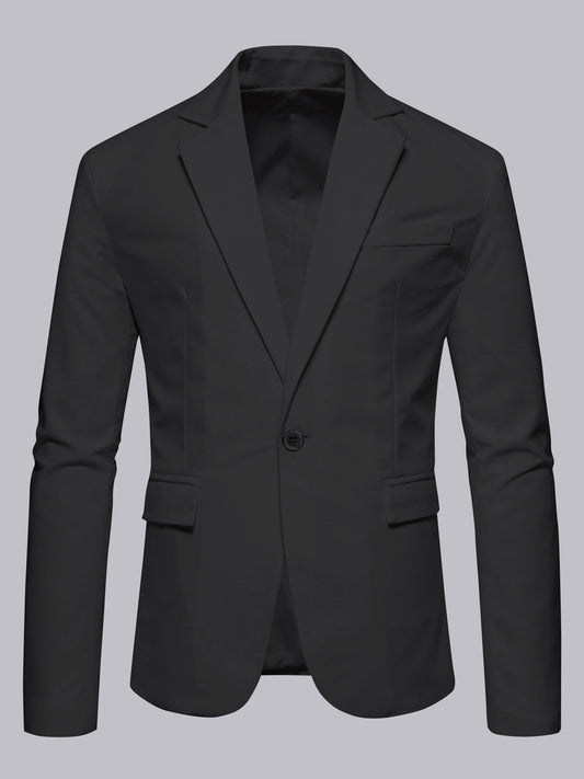Smooth One Button Notch Lapel Men's Suit Jacket For Business & Formal Occasions