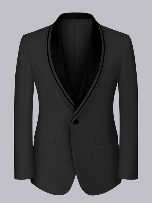 Timeless Shawl Lapel Contrast Trim One Button Men's Suit Blazer For Guest