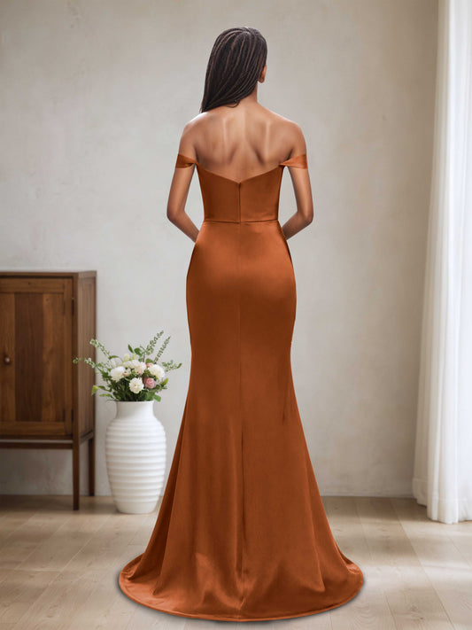 Elaine Sexy Off-the-Shoulder Long Satin Bridesmaid Dresses