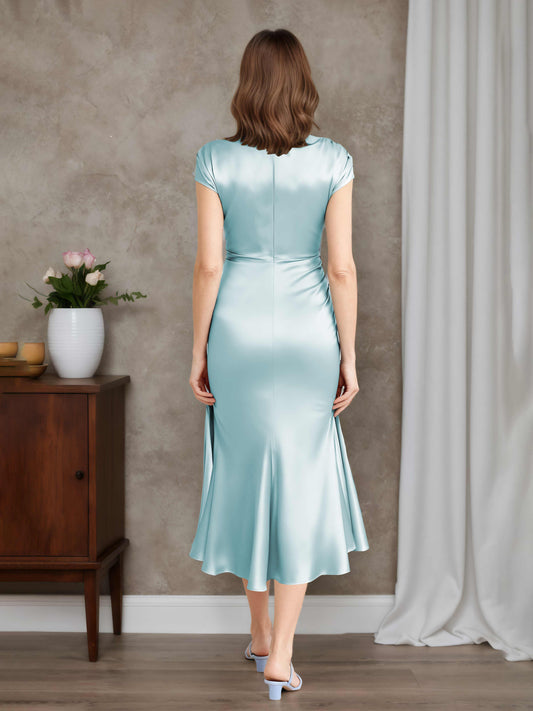 Isenia A-line Short Sleeves Pleated Ankle-Length Satin Mother of the Bride Dresses