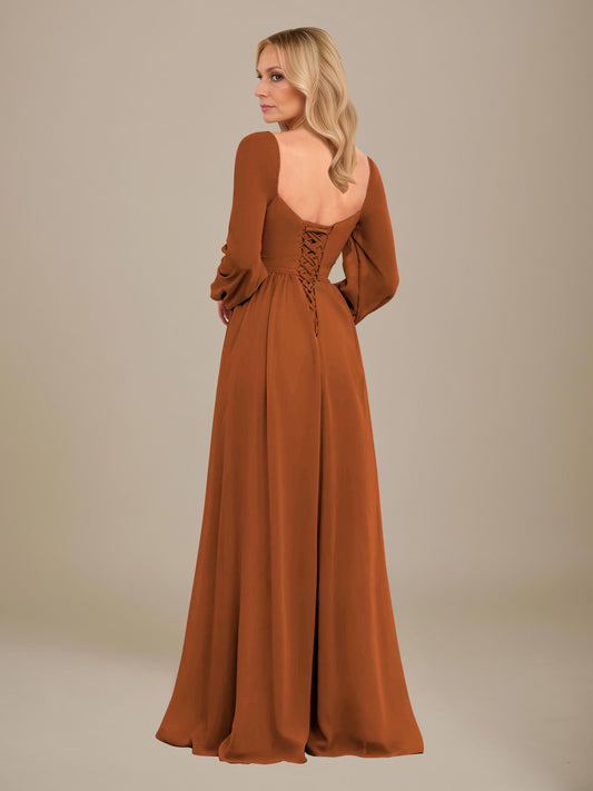 Clarisse Graceful Long Sleeves Sweetheart Slit Maxi Chiffon Mother Of The Bride Dresses