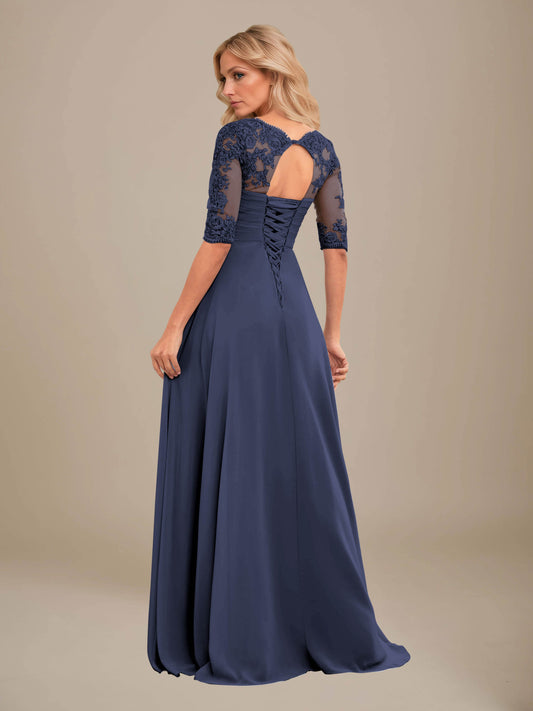 Cosima Gorgeous Half Sleeves Slit Keyhole Maxi Lace Chiffon Mother Of The Bride Dresses
