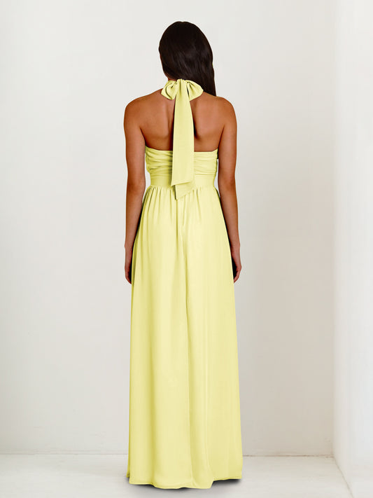 Lysha Trendy Halter Neckline Sheath Chiffon Bridesmaid Dresses with Slit