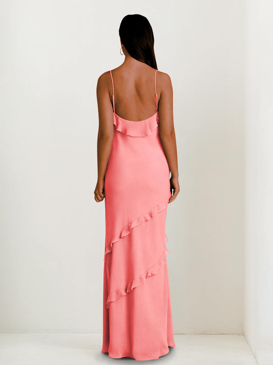 Larea Charming Spaghetti Straps Ruffles Bridesmaid Dresses with Slit