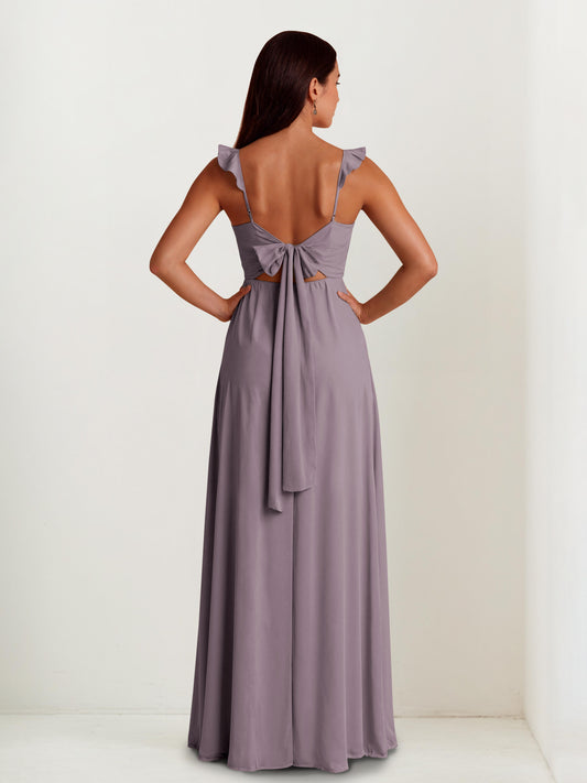 Eulalia Elegant One Shoulder Cutout Waist Slit Long Chiffon Bridesmaid Dresses