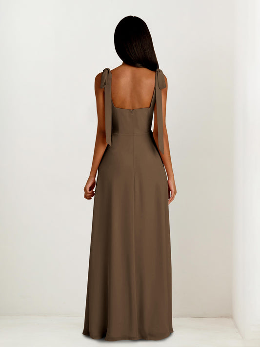Lomar Chic Square Bow Shoulder A-line Bridesmaid Dresses with Slit