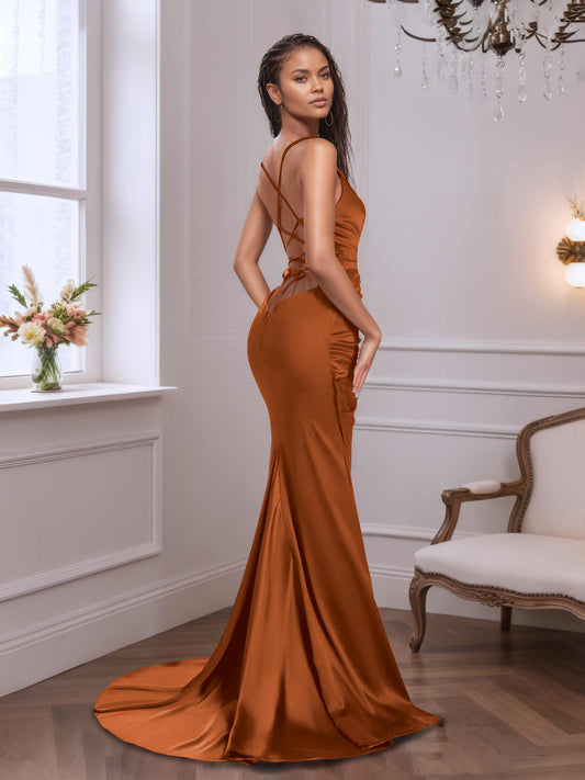 Gwendolyn Sexy V-neck Mermaid Bridesmaid Dresses with Sweep Train