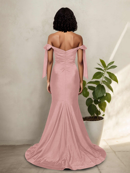Marilyn Off The Shoulder Bridesmaid Dresses with Sweep Train