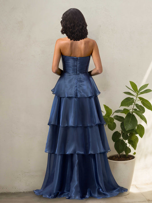Helyra Modern A Line Strapless Sleeveless Tiered Long Prom Dresses