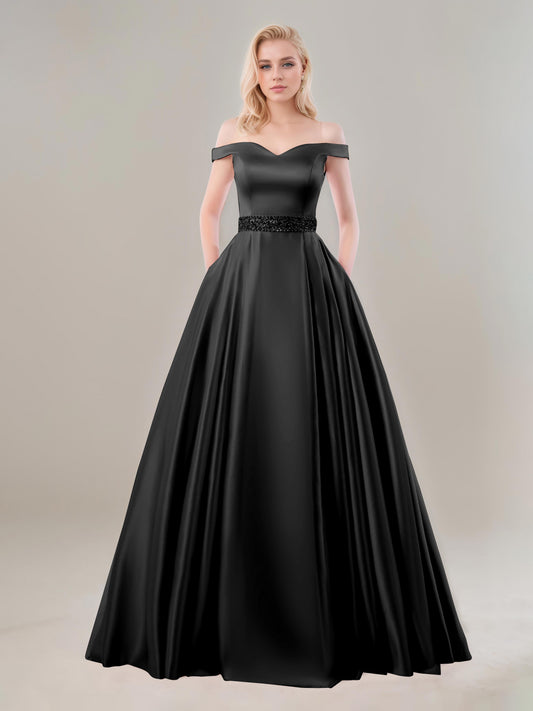 Gossamer Lavish Off the Shoulder With Pockets A Line Long Satin Formal Dresses