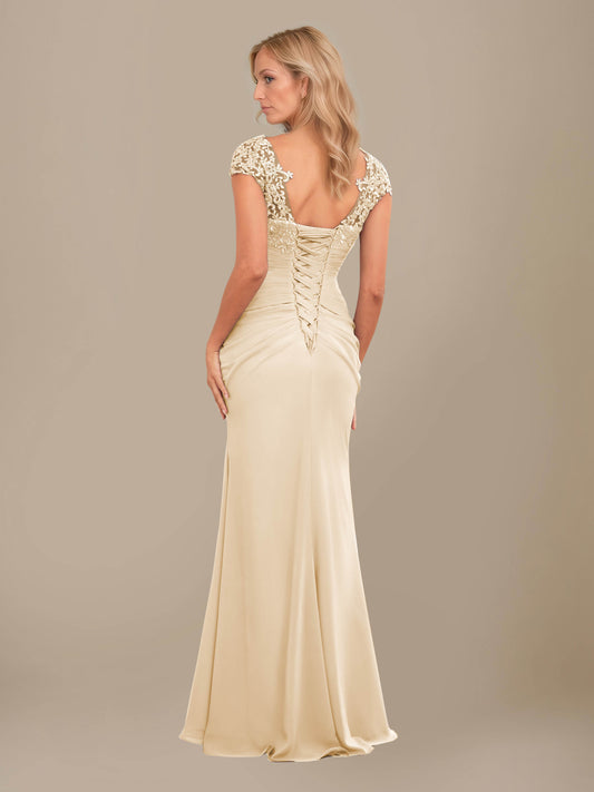 Calla Romantic Sheath Ruched Lace Chiffon Mother Of The Bride Dresses