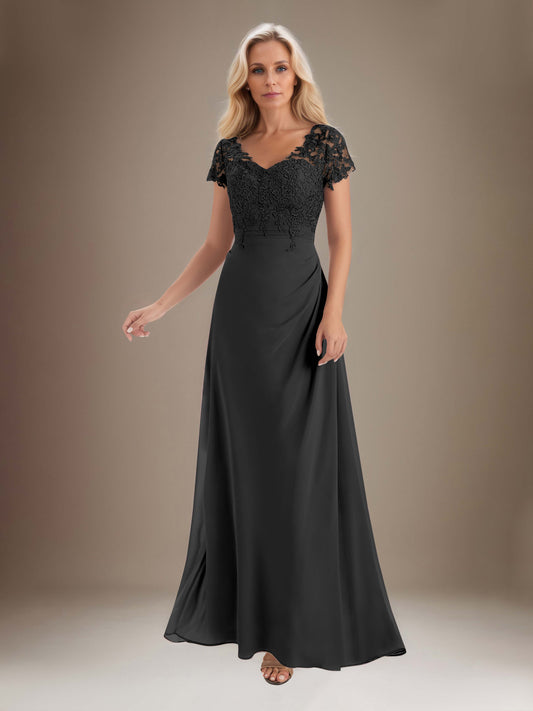 Gaia Graceful V Neck Lace Appliques Ruched Chiffon Mother Of The Bride Dresses