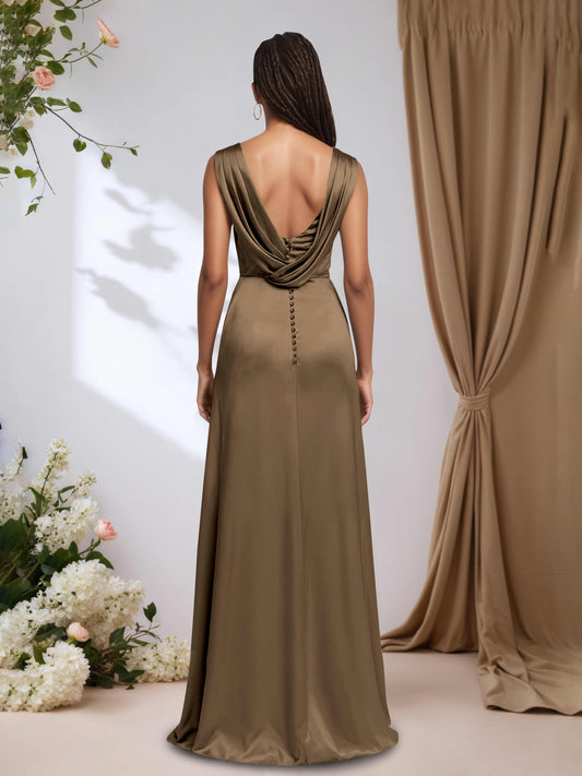 Graigie Sexy Cowl Neck Long Satin Modern Formal Bridesmaid Dresses