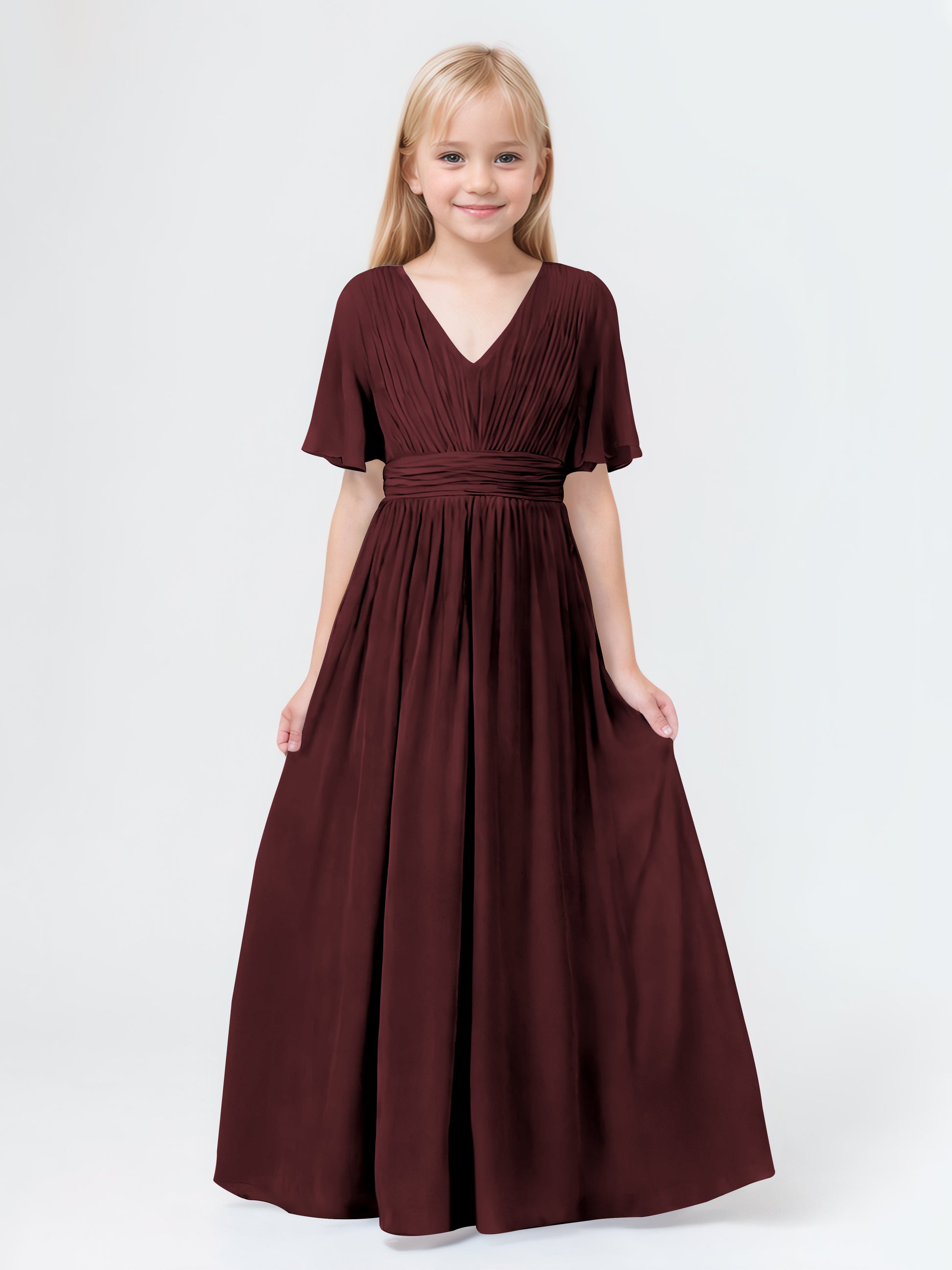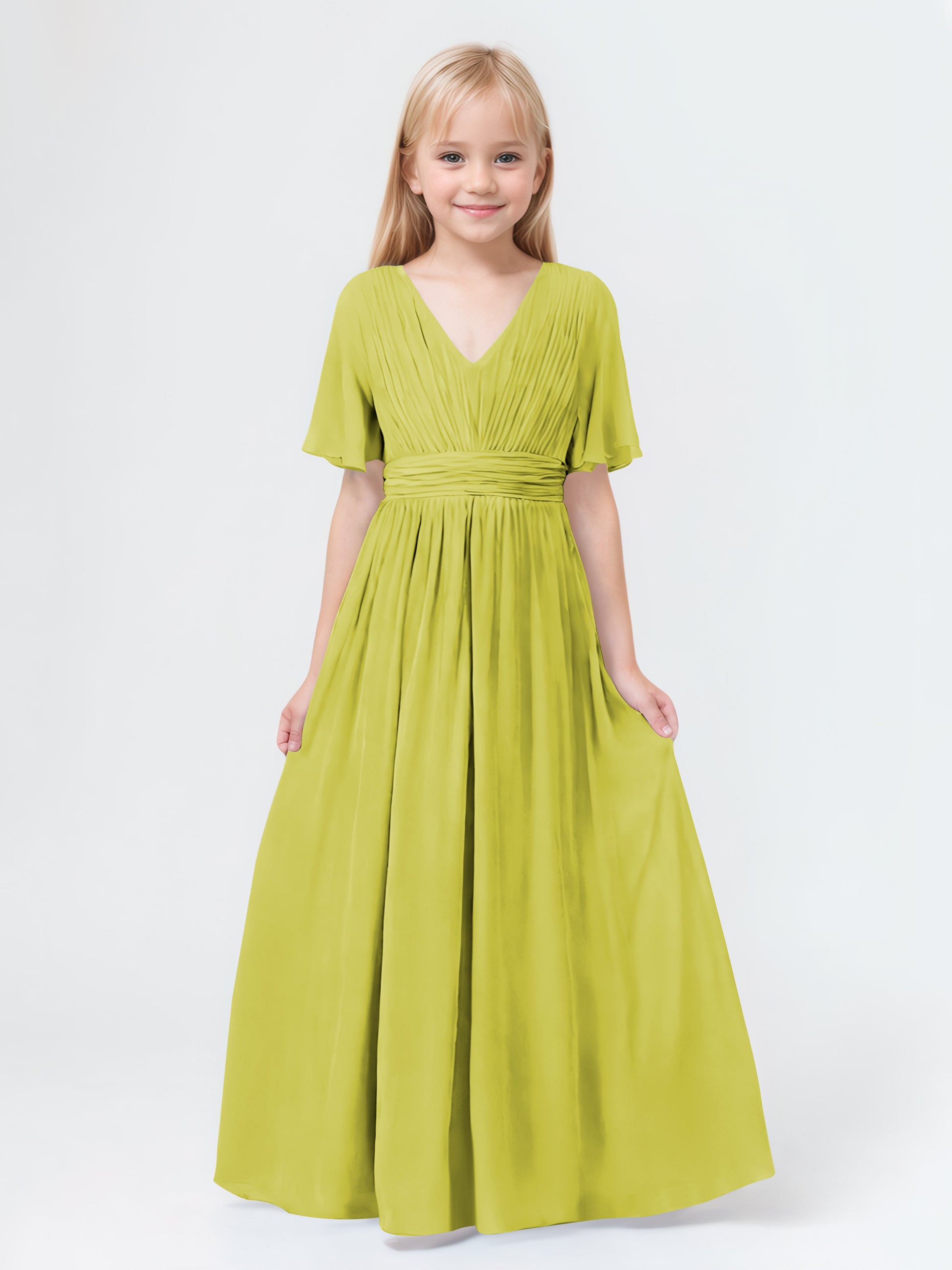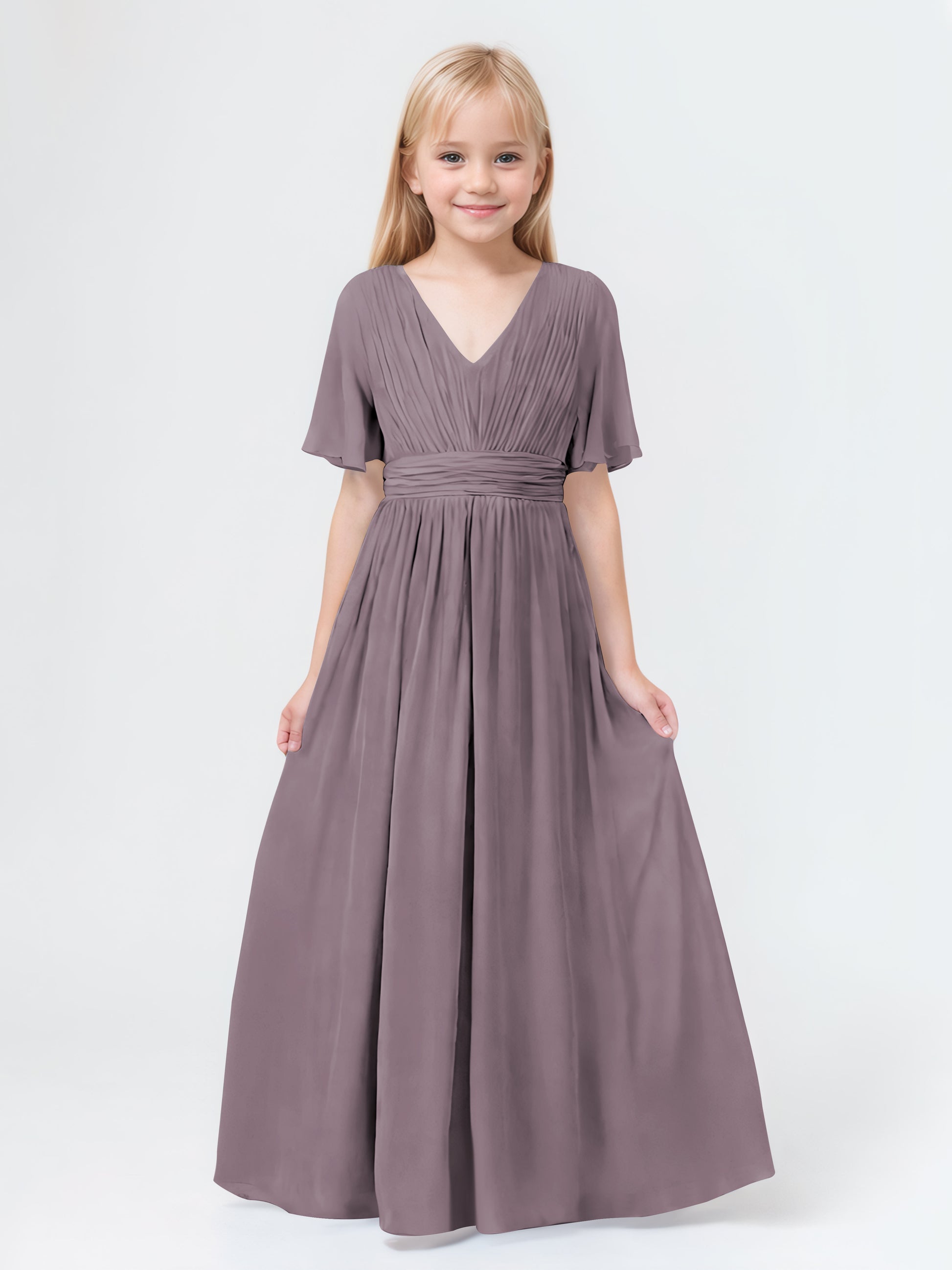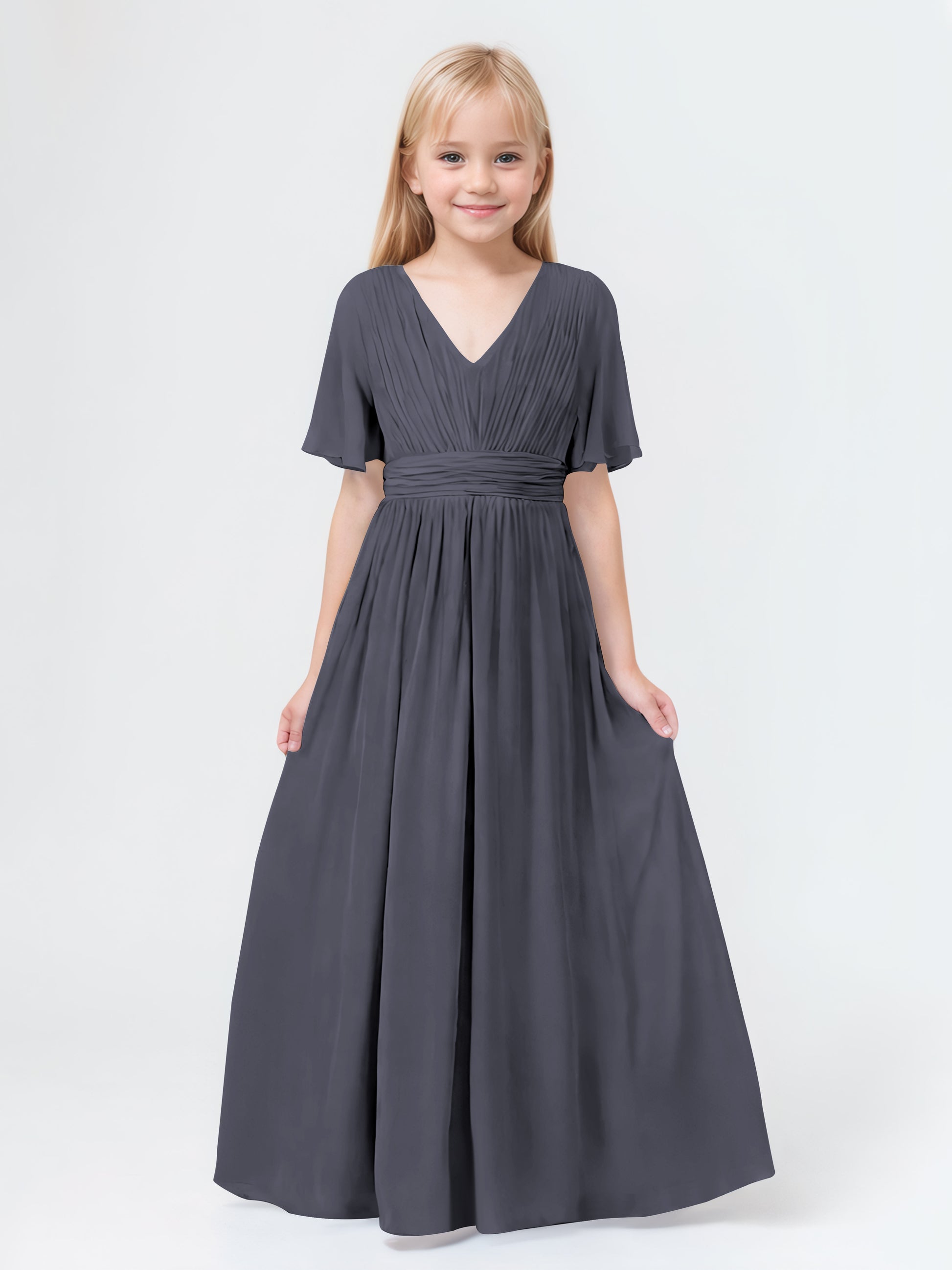 A-Line V-neck Short Sleeves Chiffon Junior Bridesmaid Dresses