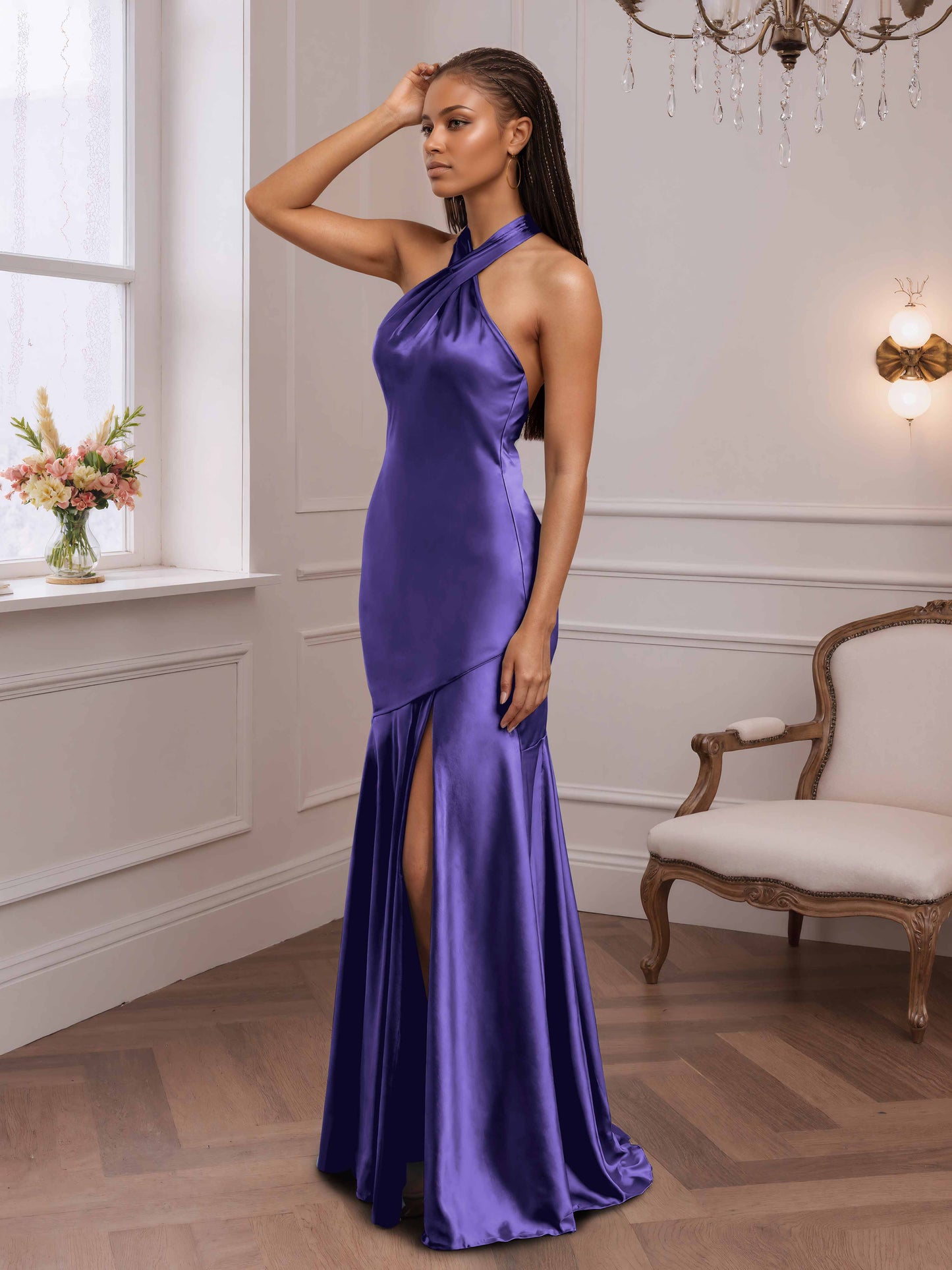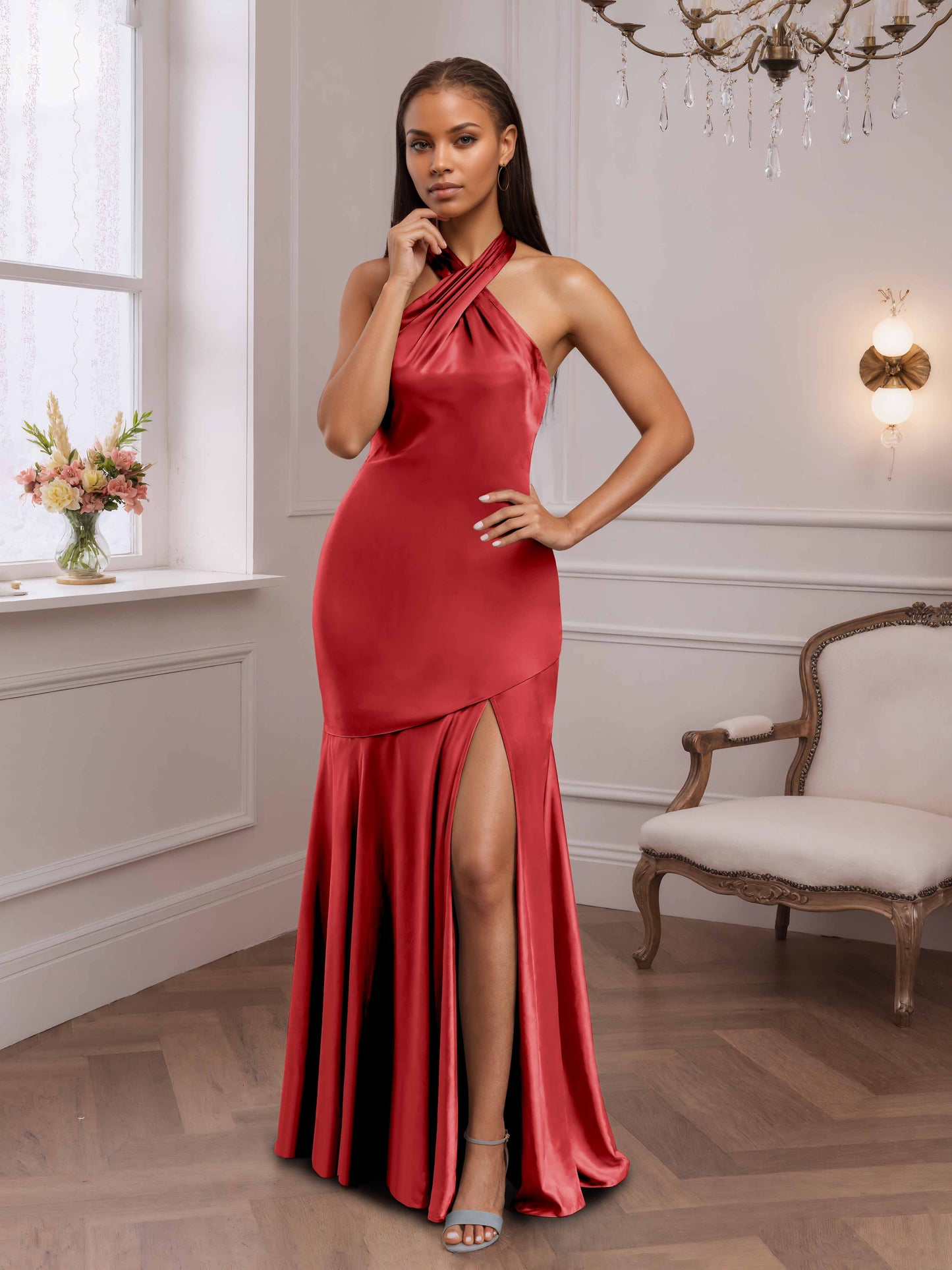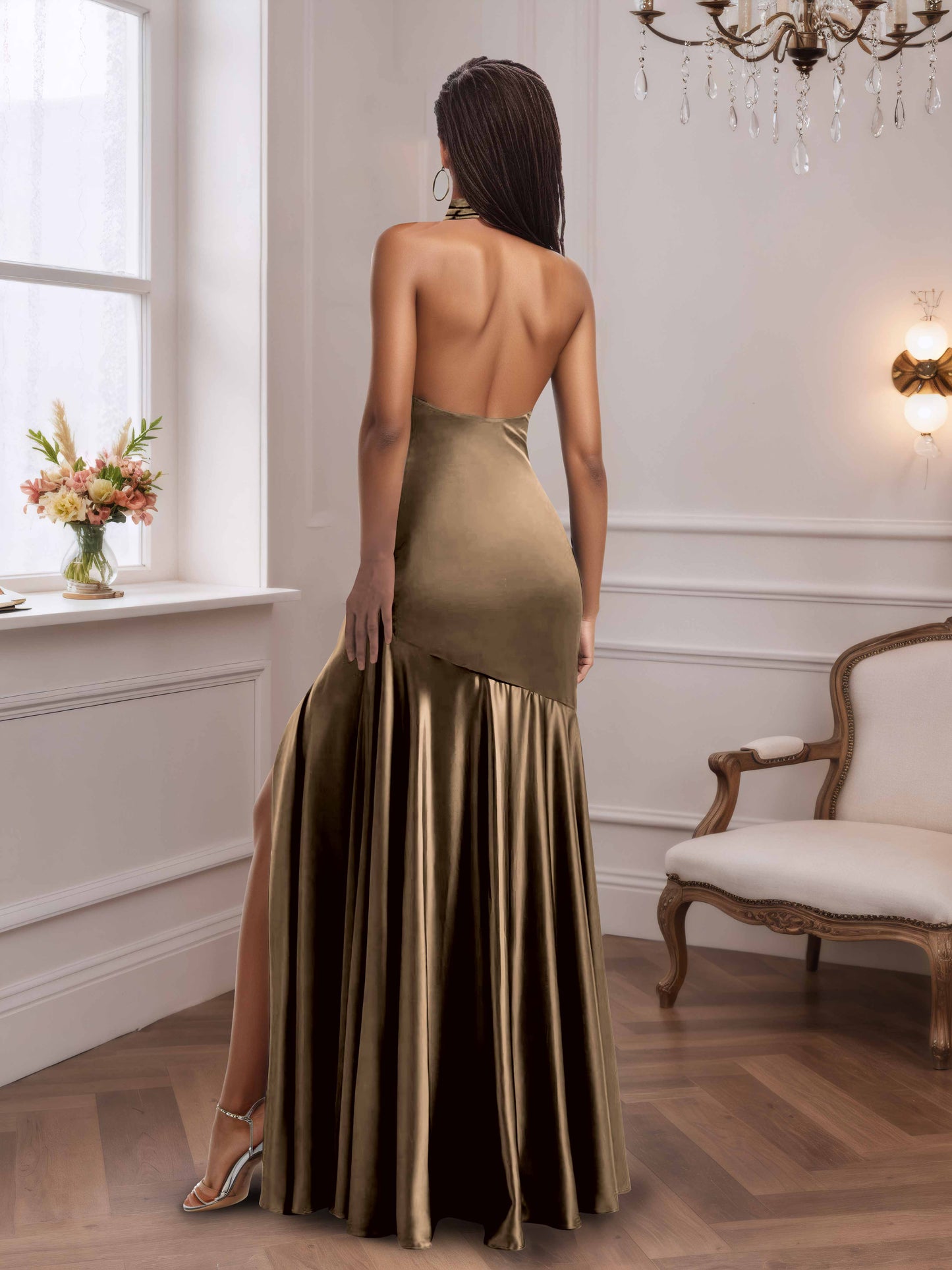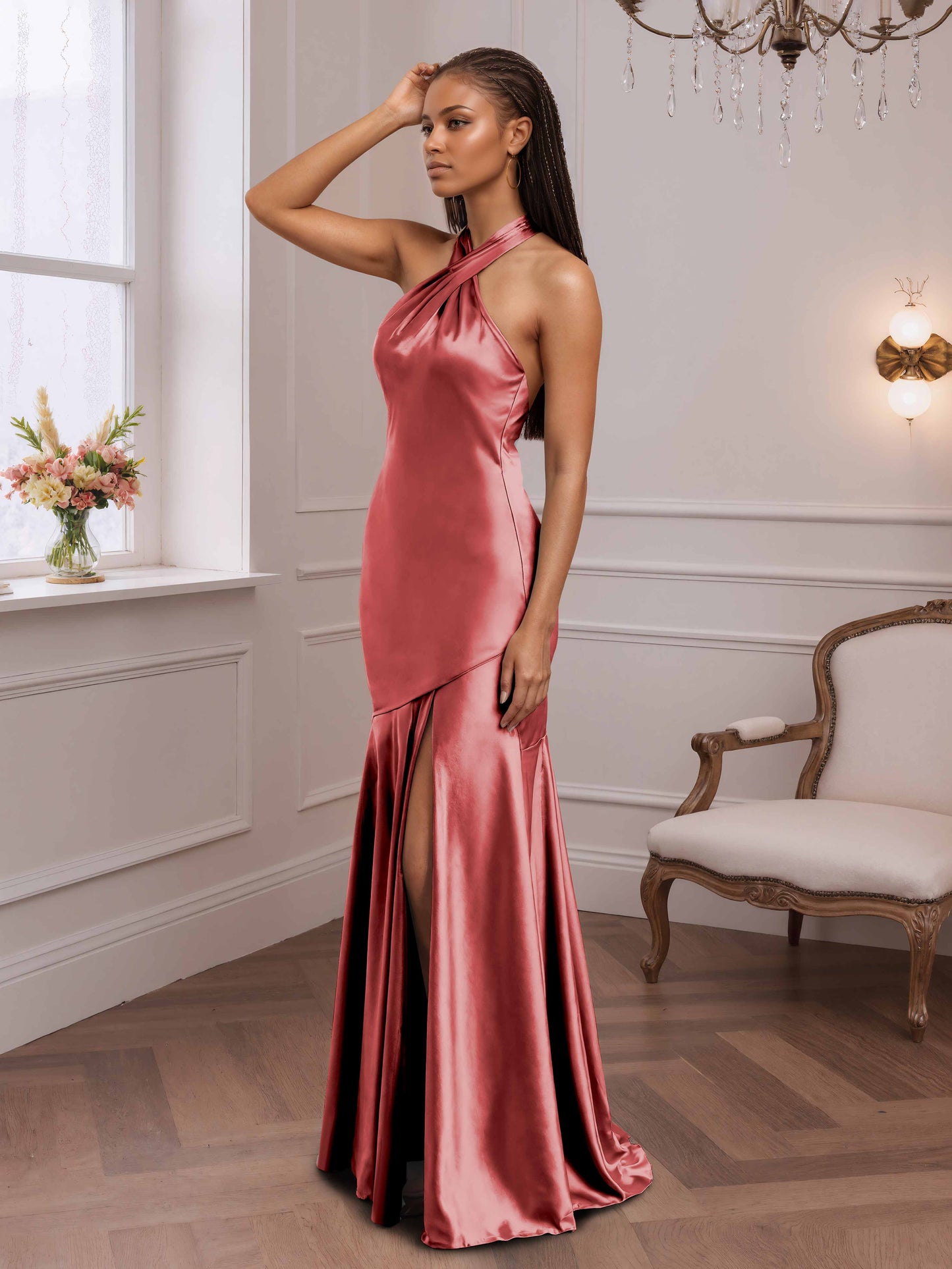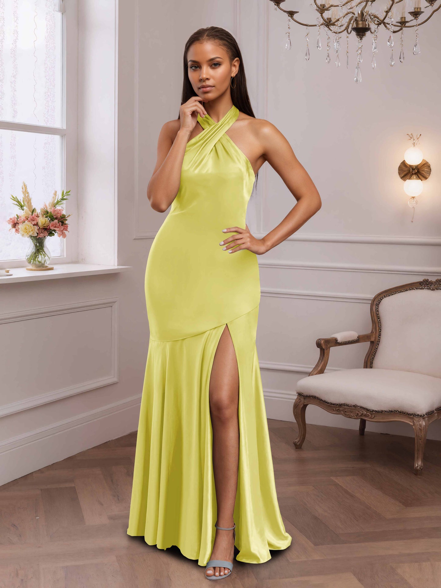 Bagott Unique Halter Floor Length Sheath Bridesmaid Dresses