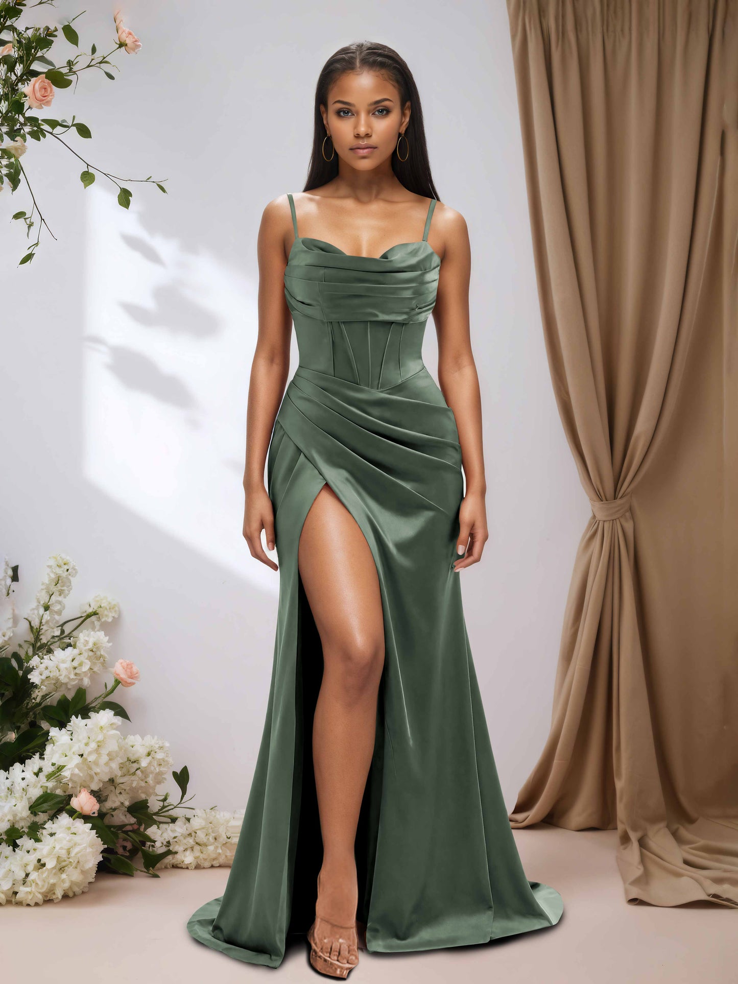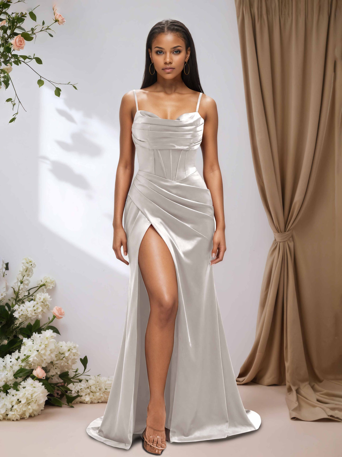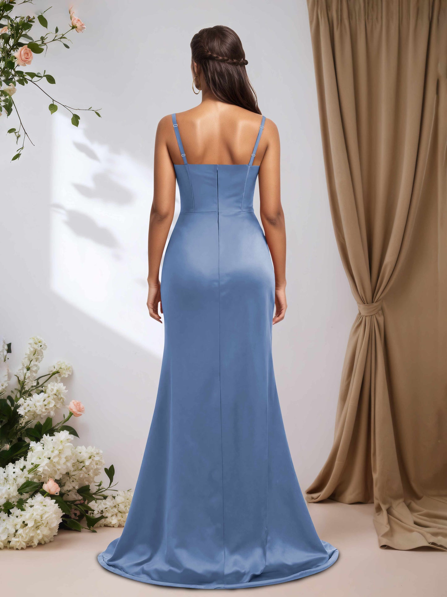 Bagshaw Unique Sweetheart Satin Bridesmaid Dresses with Slit