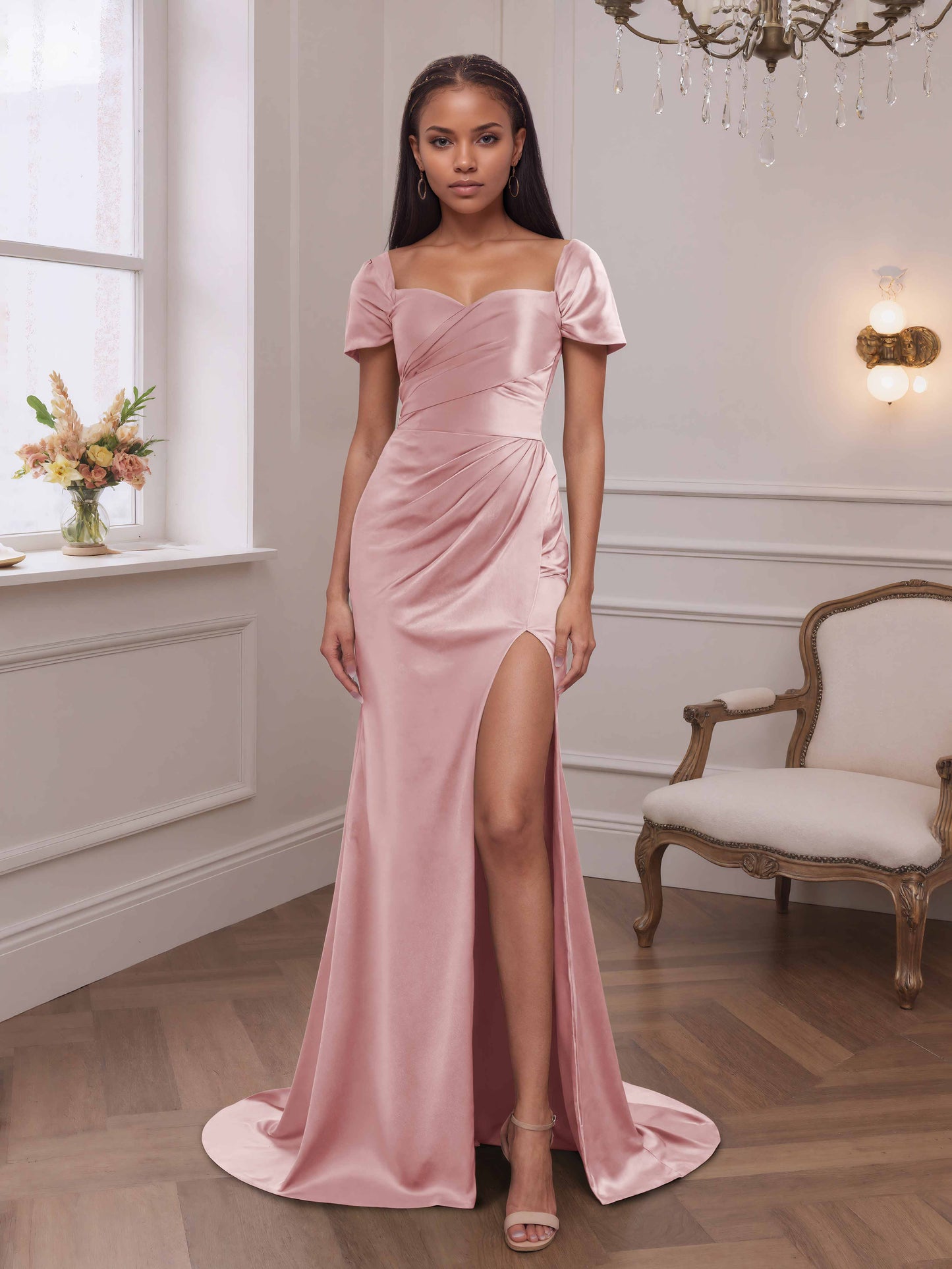 Brittany Elegant Off The Shoulder Bridesmaid Dresses with Slit