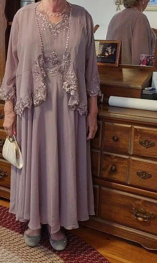 This was the third dress I tried for my son's wedding. It's lovely and age appropriate. I'm quite impressed with the quality.