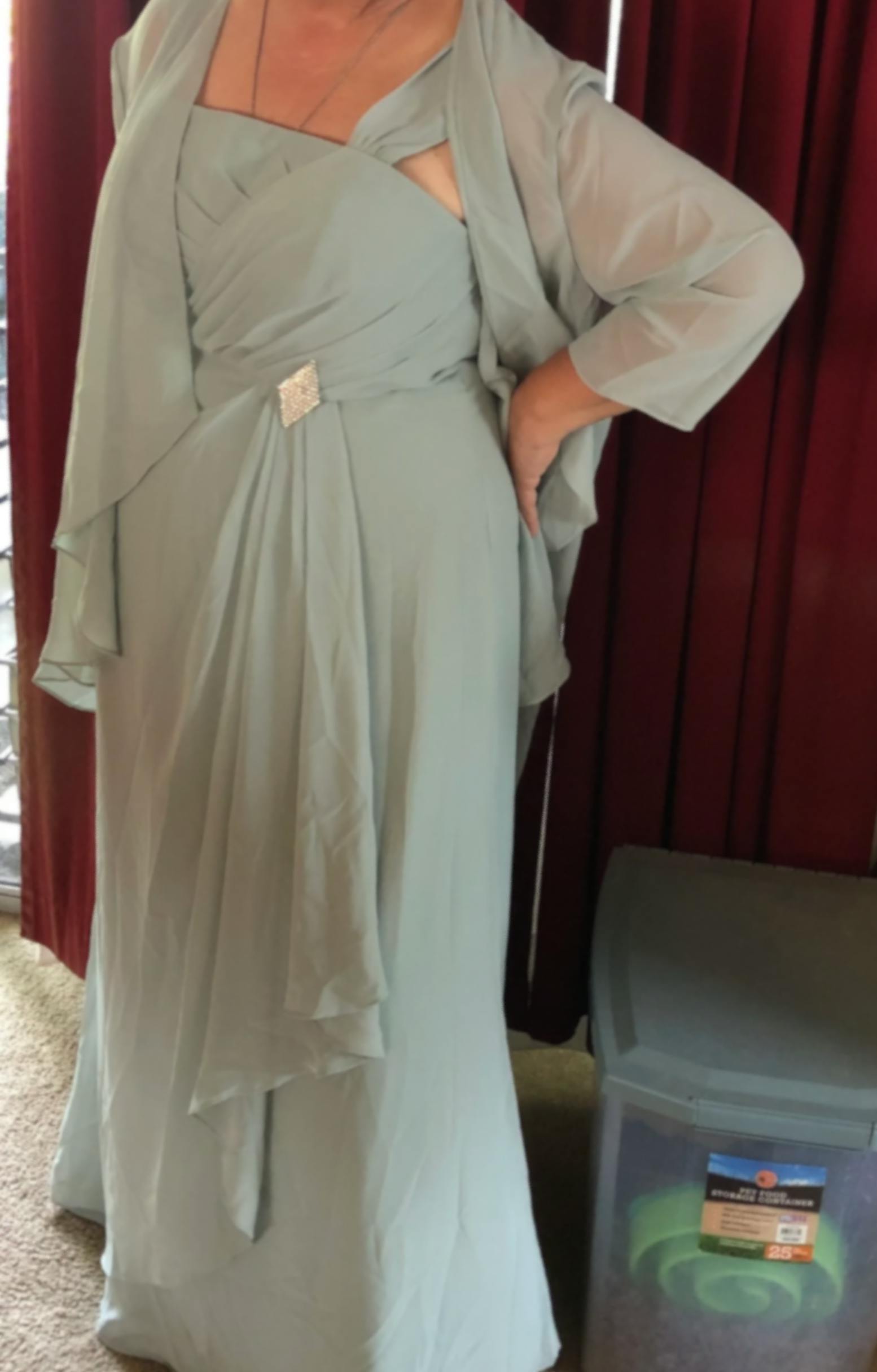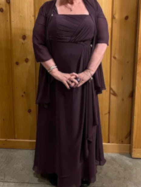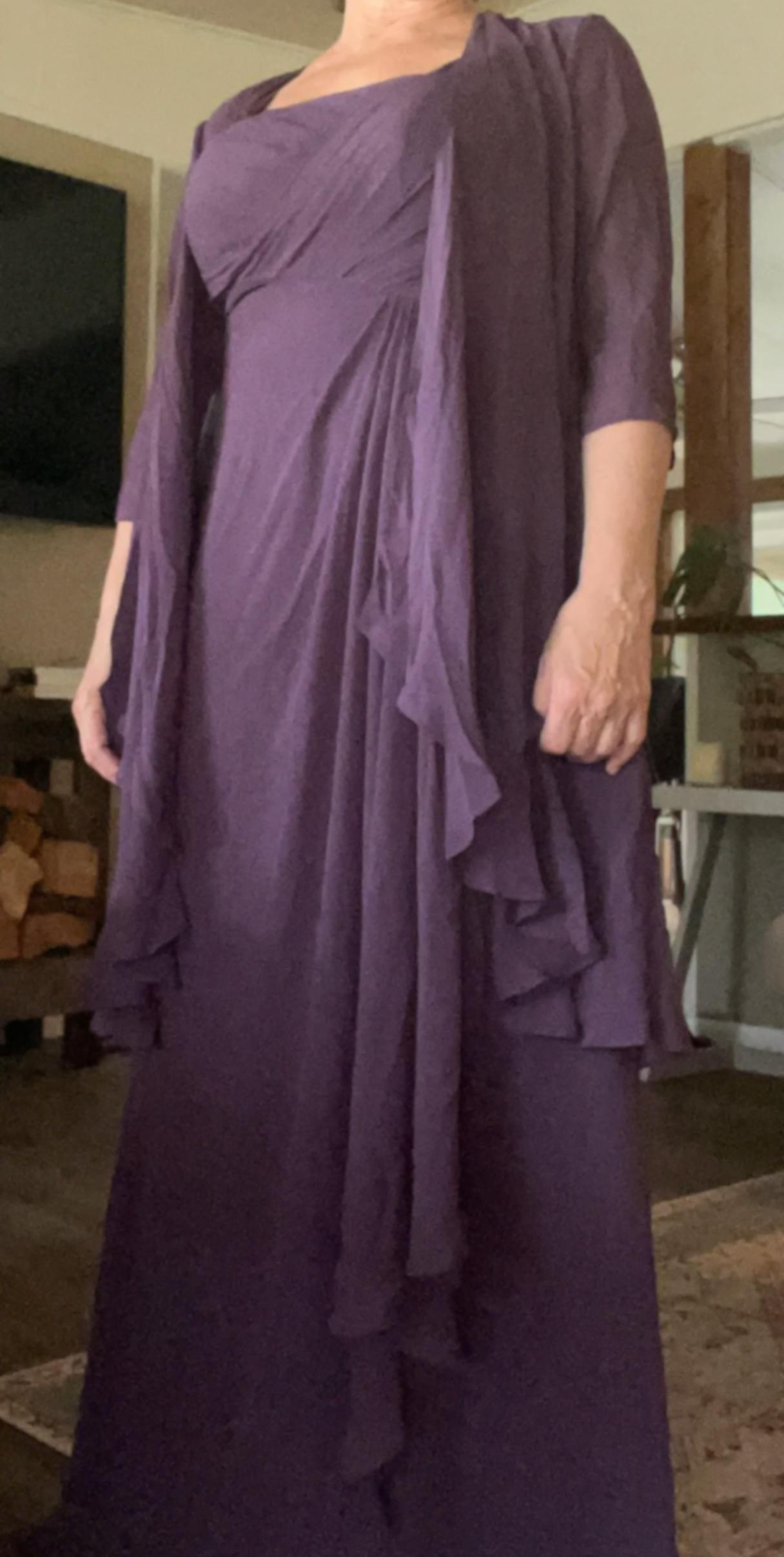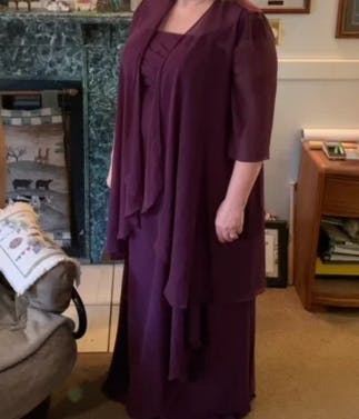 This dress is absolutely beautiful! It fits perfectly and looks so elegant and smart. I was so pleased with it when it arrived, gorgeous material and so well made! Perfect for my daughters' wedding, I will definitely feel I am playing the part of 'Mother of the Bride' and making her proud with this lovely dress.