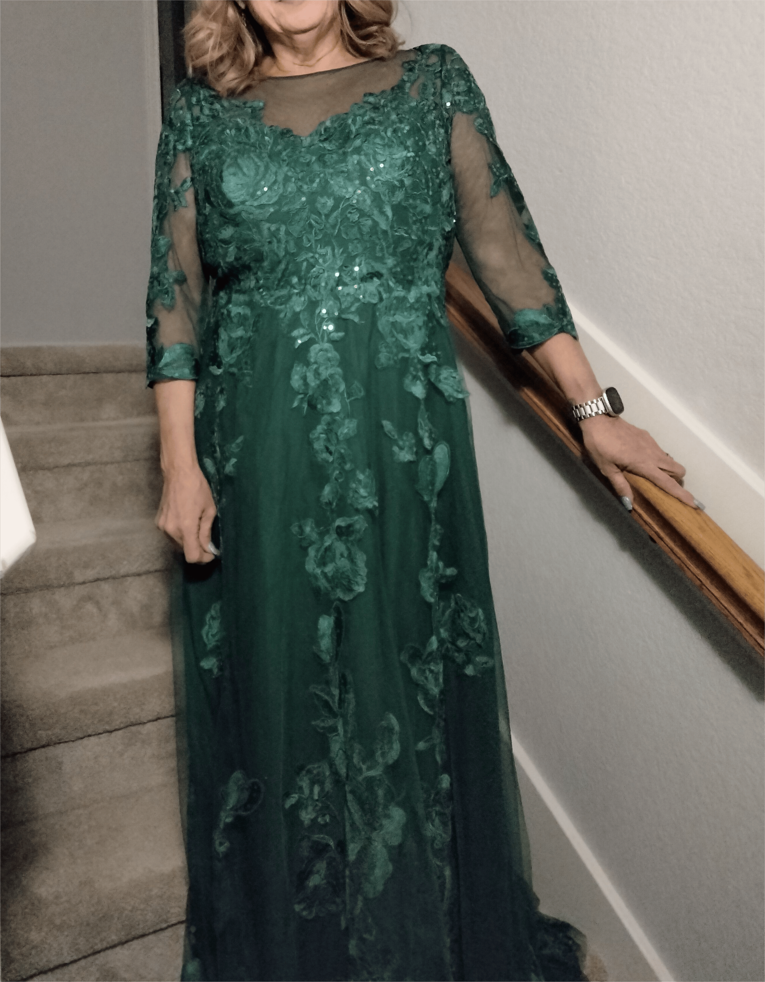 Elarin Delicate A-line Illusion 3/4 Sleeves Lace Appliqued Long Mother of the Bride Dresses