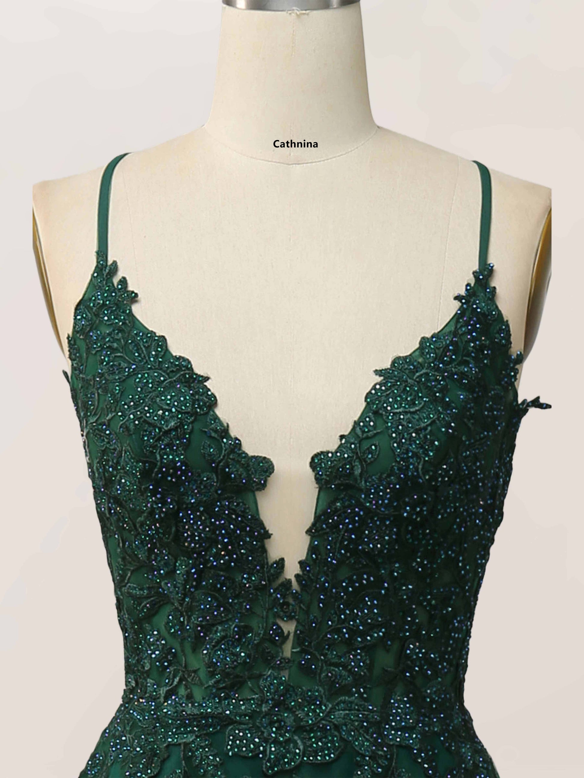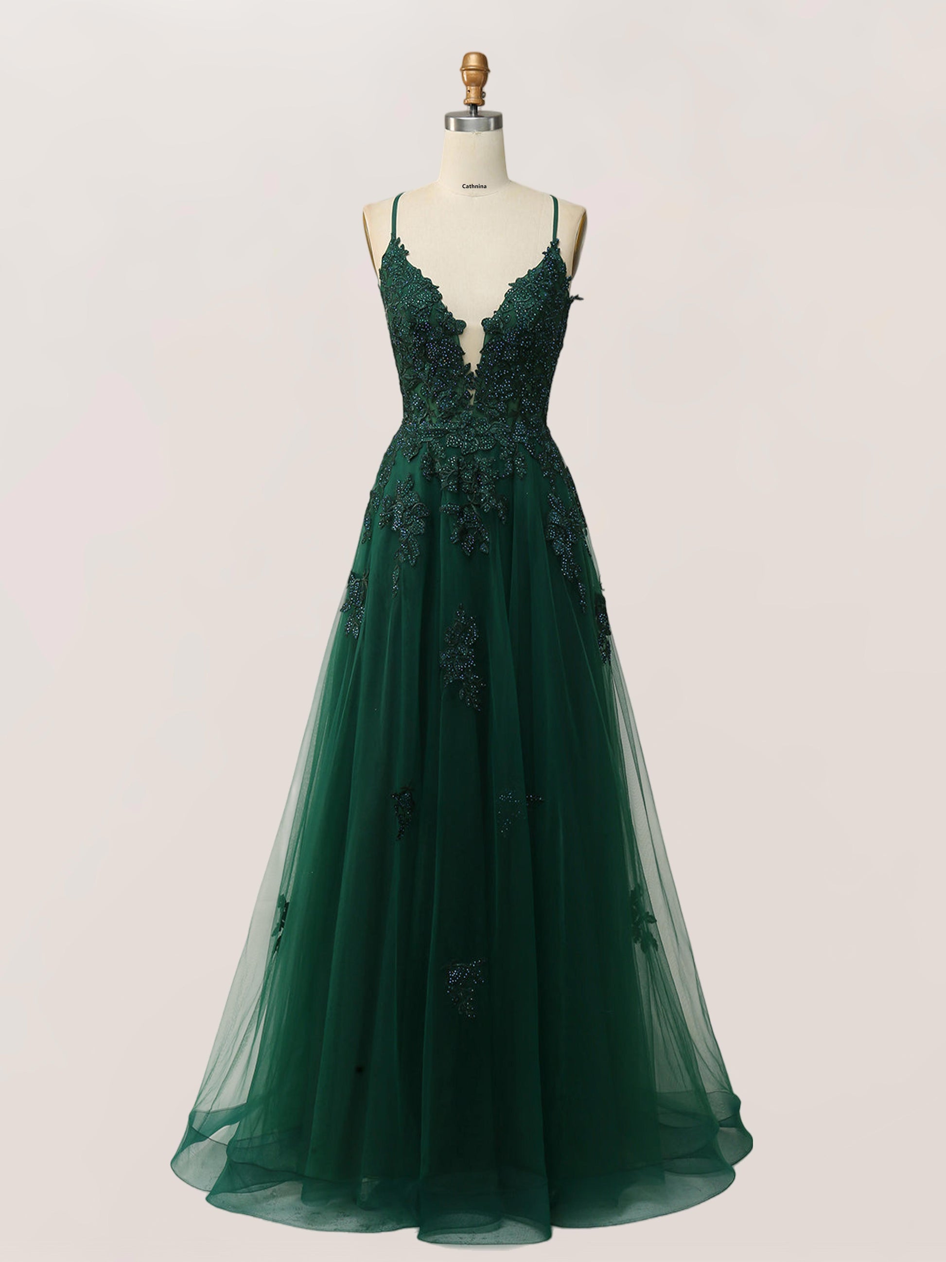 Emira Trendy A Line V-neck Spaghetti Straps Long Tulle Prom Dresses