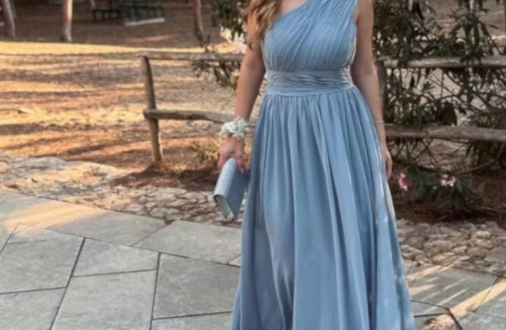 The pleating detail on this dress is what sold me. It arrived with the pleats perfectly pressed and they held their shape all night, even through sitting and dancing. The quality of the chiffon is evident in how beautifully it drapes. True to size.