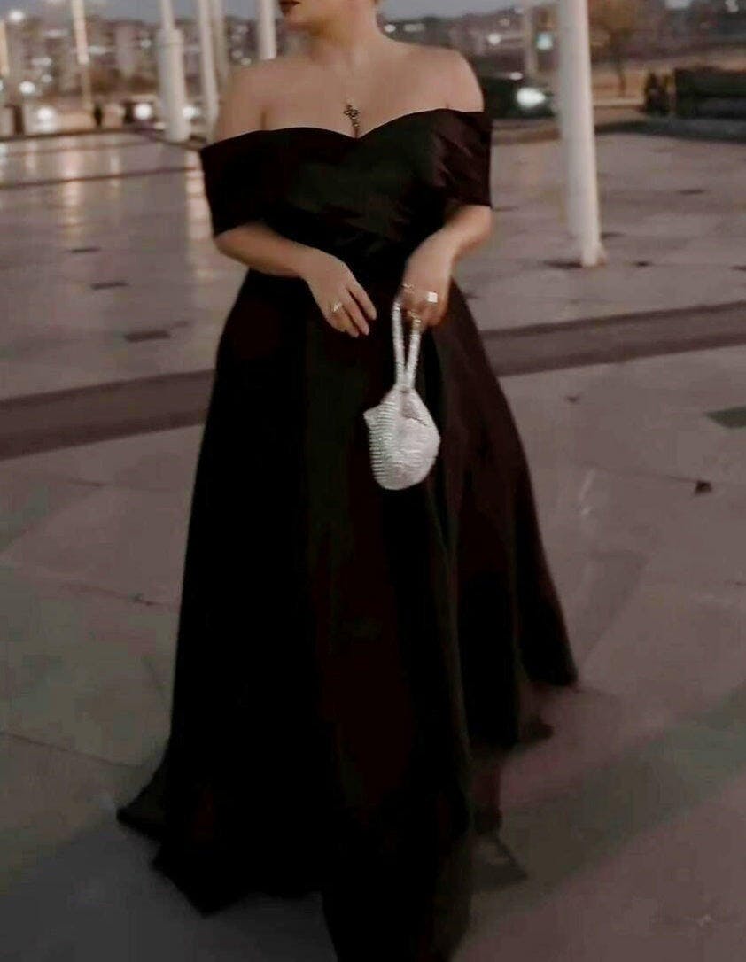 Euphrasie Lavish Off the Shoulder With Pockets Sweep Train Satin Occasion Dresses