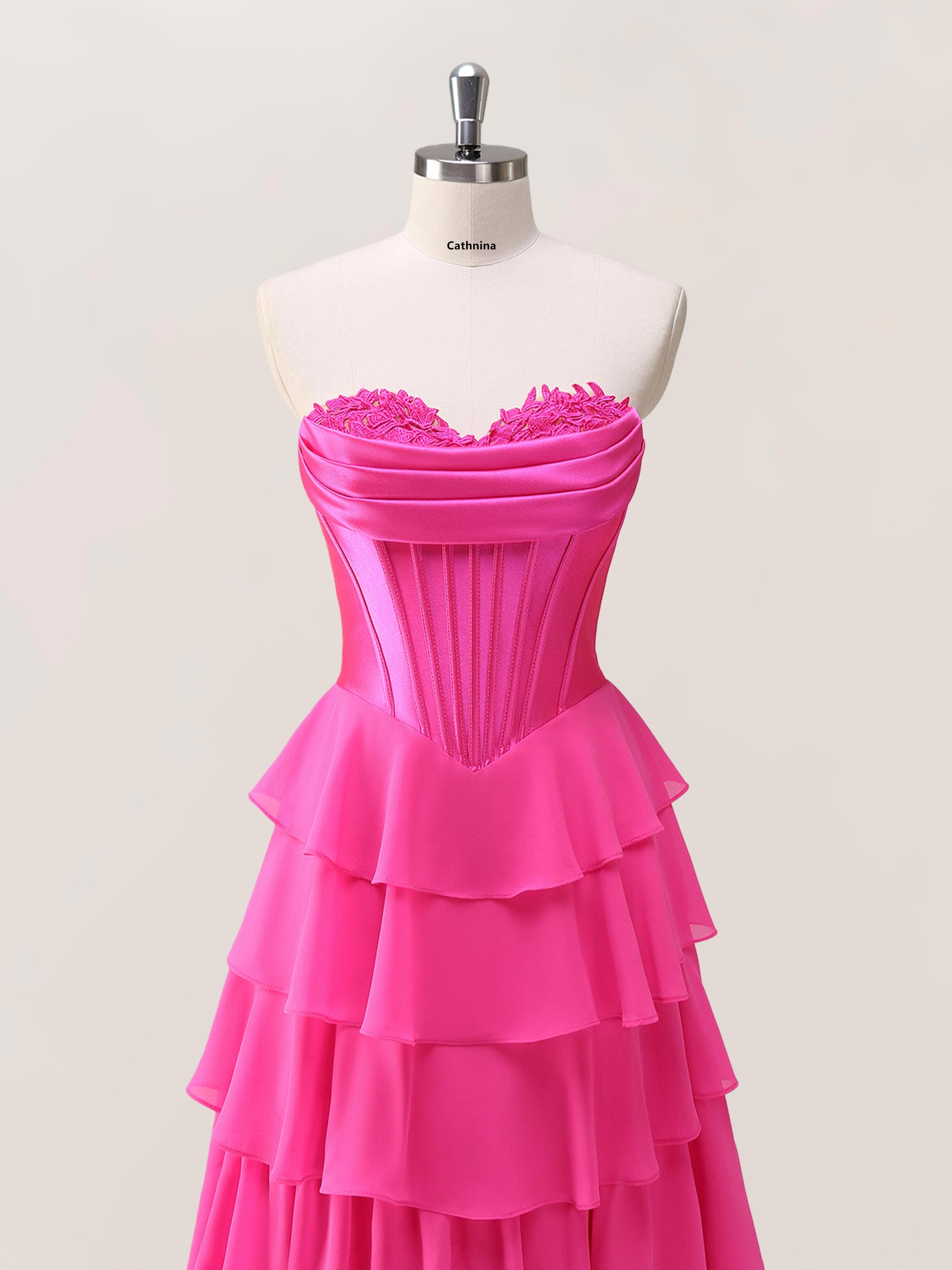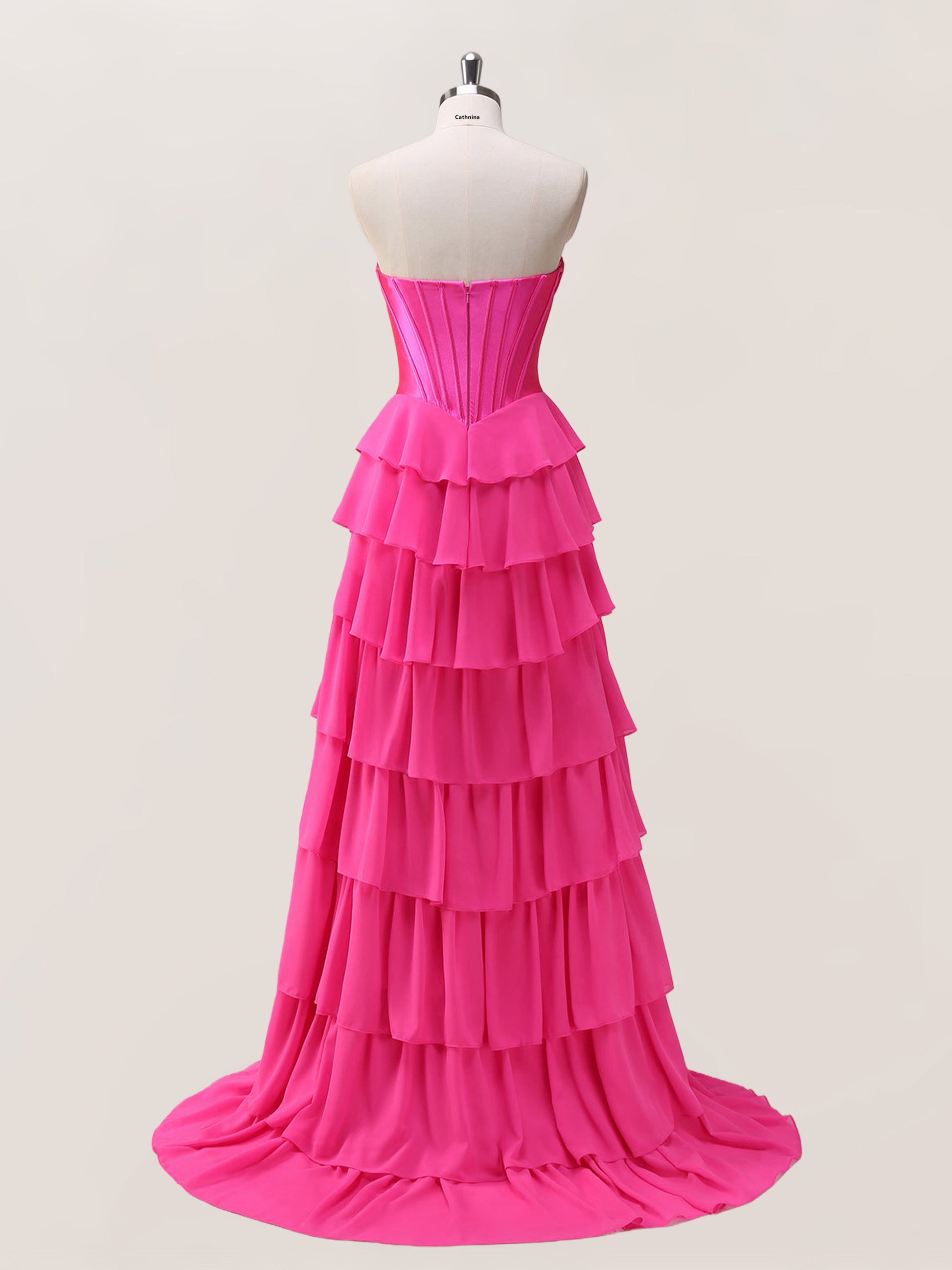 Katira Classy A Line Sweetheart Corset Tiered Prom Dresses with Slit